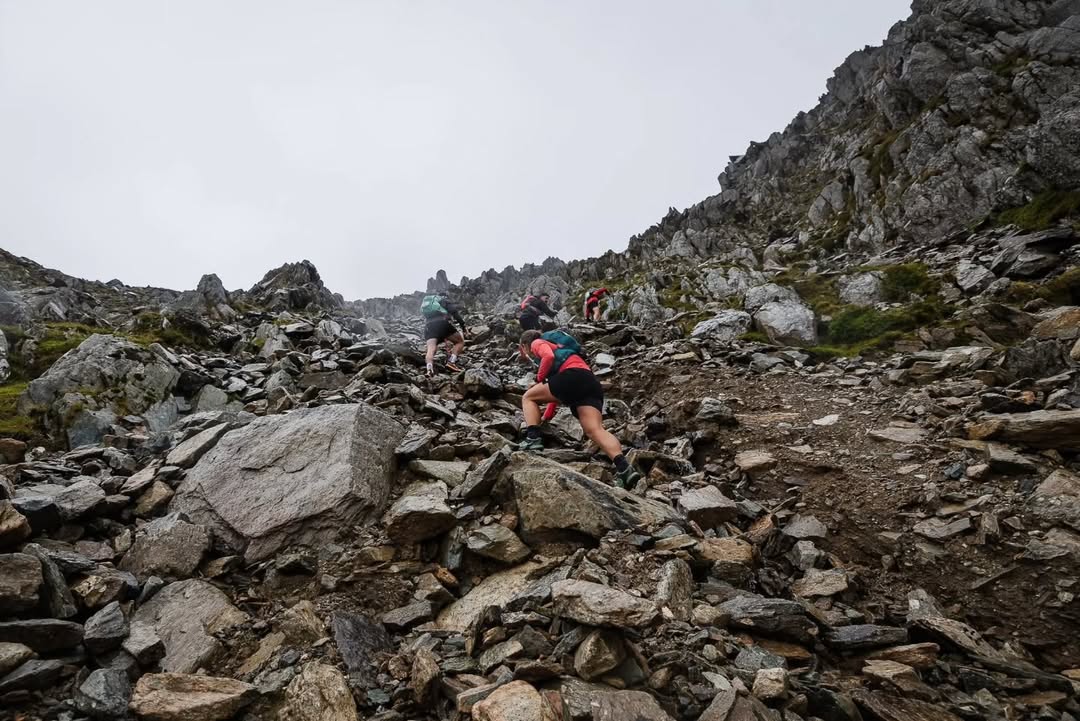 Het terrein in Wales is verraderlijk: glibberige rotsen, modderige paden en harde wind maken het lopen bijna onmogelijk. Slechts vijf uur na de start gaat het mis. Danique glijdt uit op een berg, valt hard en voelt direct een scherpe pijn in haar knie. Ze probeert door te gaan, maar na 25 uur intensief ploeteren moet ze uiteindelijk stoppen.